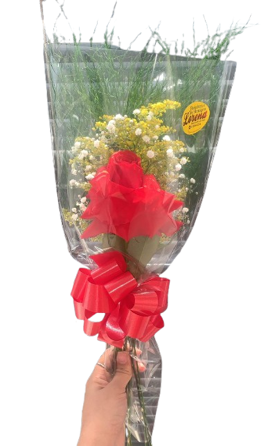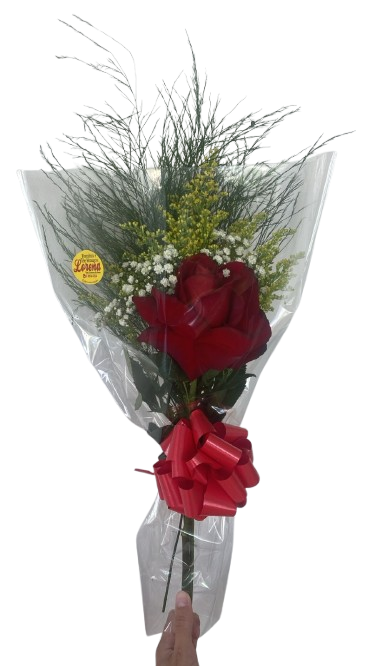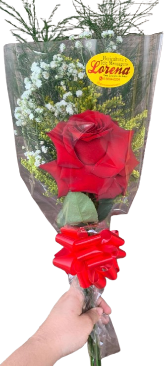Arranjo de Rosa Colombiana Solitária, Importada , composto por aspargos e gilpsofila , em embalagem de celofane, finalizada com ráfia! Surpreenda aquela pessoa especial!