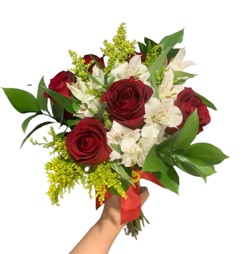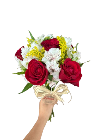 Composto por 06 Rosas, 04 astromélias e ruscus. *Consultar disponibilidade de cores ou deixar a nossa escolha.
