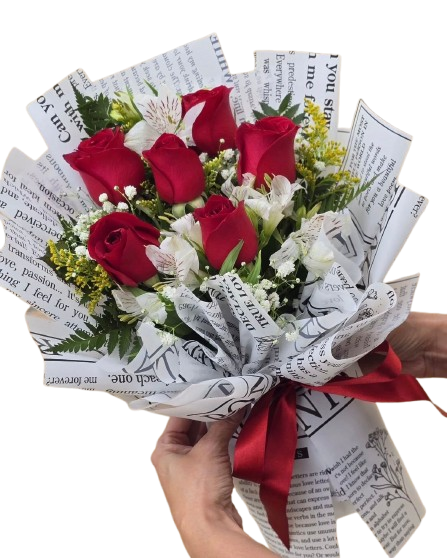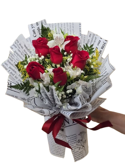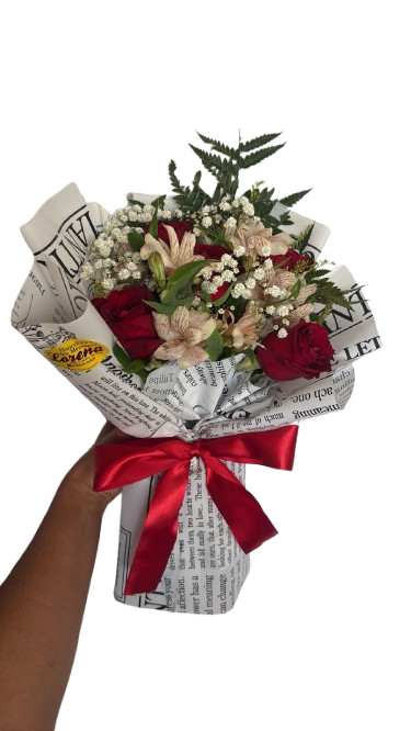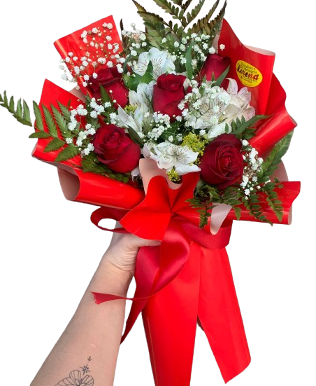 Composto por 6 rosas, astromélias e folhagens, esse arranjo transmite amor em cada detalhe.