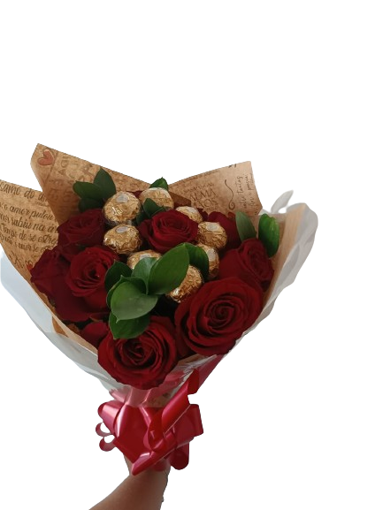 Lindo Buquê de Rosas Vermelhas e Ferrero Rocher, essa combinação e simplesmente perfeita !