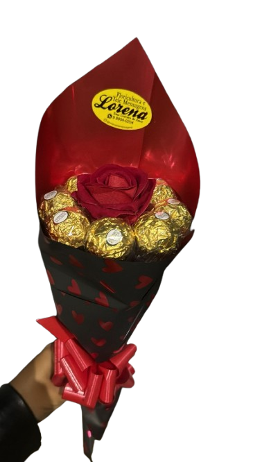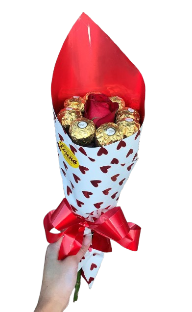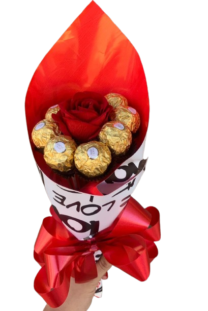 Contém 1 Rosa Artificial + 8 Ferrero Rocher.
