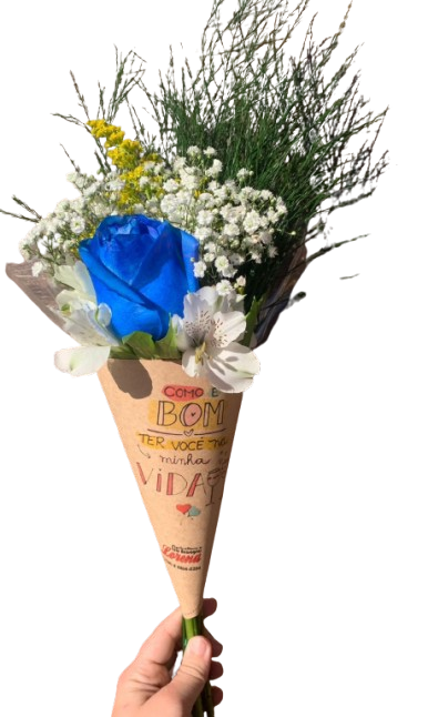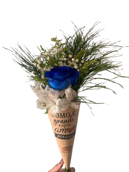 Cone Flor, composto por uma rosa azul , tango , gipsofila, astromélias, e aspargos.