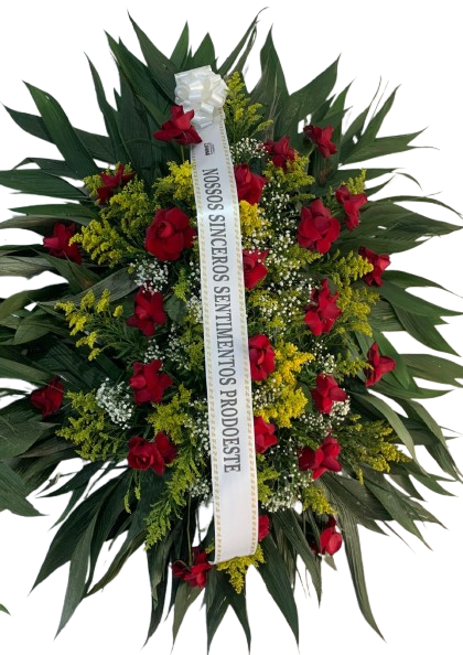 Uma demonstração de carinho em situações difíceis não pode faltar! Demonstre os seus pêsames com uma coroa de flores, é uma ótima forma de homenagear uma pessoa querida que se foi. Nós da Floricultura e Telemensagens Lorena,estamos aqui para te ajudar nesse momento. Coroa tradicional, confeccionada com Rosas, tango, gipsofila, medindo aproximadamente 1,50 x 1,00 . Consulte cores disponíveis em estoque!