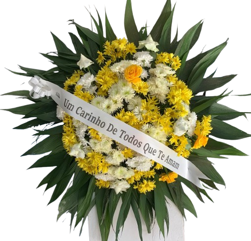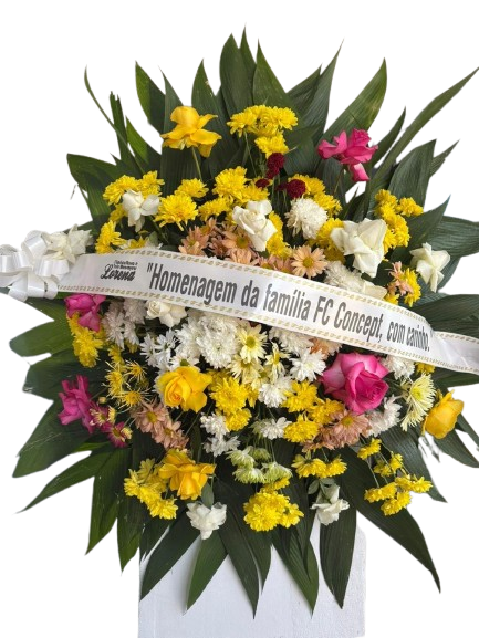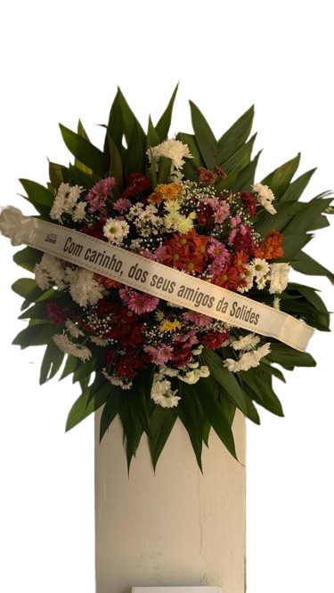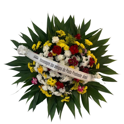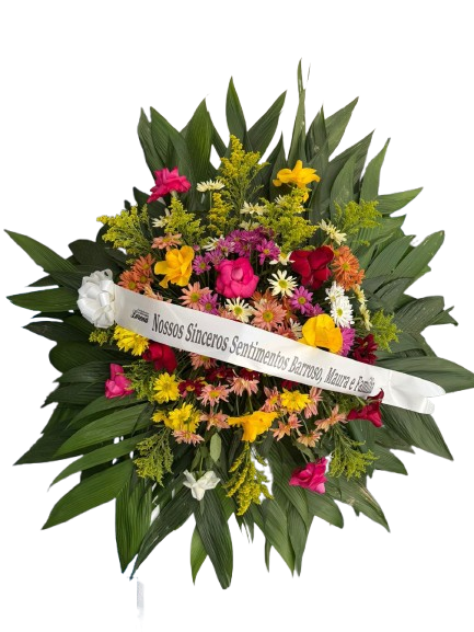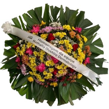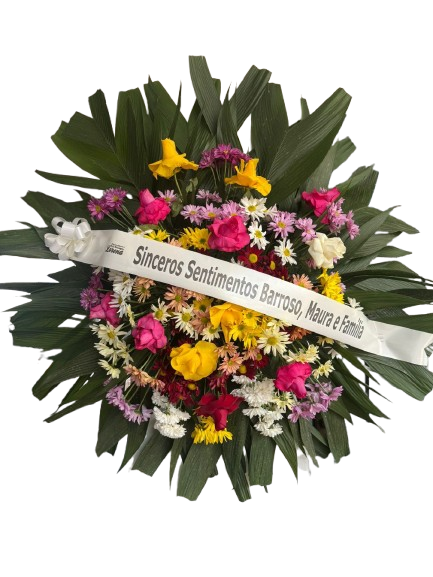 Coroa 1,00 por 1,oo média , composta por rosas e crisantemos coloridos, para prestar a última homenagem á aquela pessoa querida.