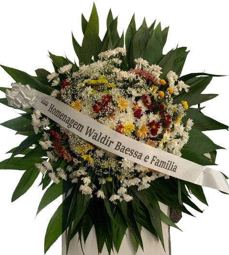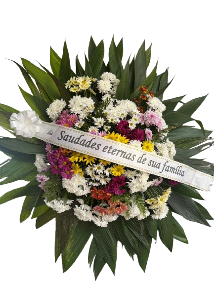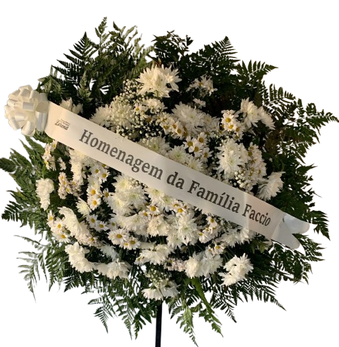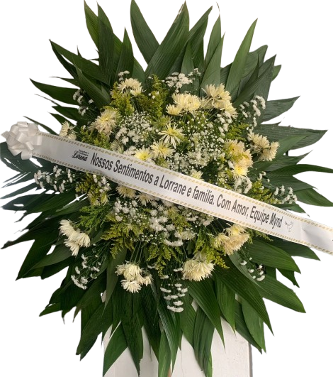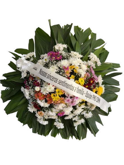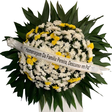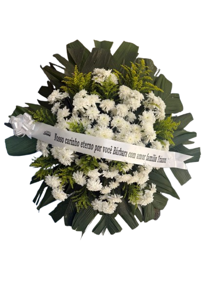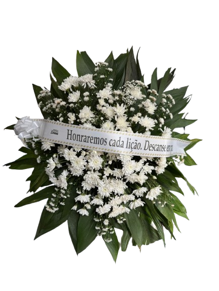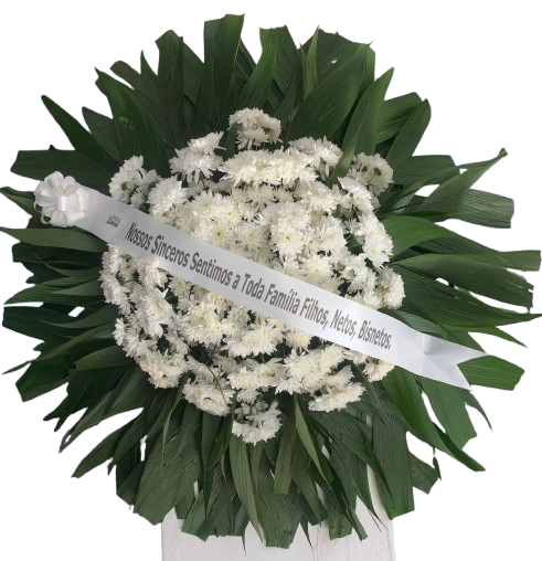 Faça sua Homenagem, expressando seu respeito e tristeza, pela perda de um Ente querido! Envie uma Coroa de Flores! Coroa Fúnebre média tamanho aproximado 1,00 x 1,00 confeccionada com crisântemos. Cores podem variar de acordo com disponibilidade em estoque. Acompanha faixa com dizeres.