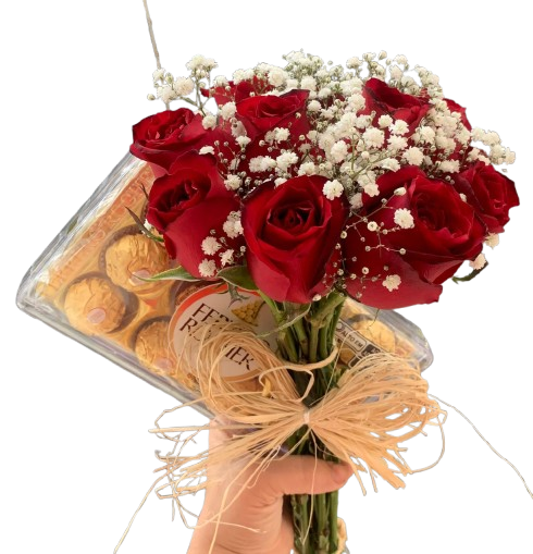 Este belo buquê contém 12 rosas vermelhas nacionais de talo longo, envoltas por ruscus e tango, deixando um ar ainda mais elegante e cheio de charme. Acompanha também bombons Ferrero Rocher12 unidades
