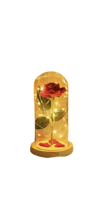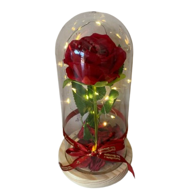 Rosa Artificial na cúpula de acrílico com pétalas.